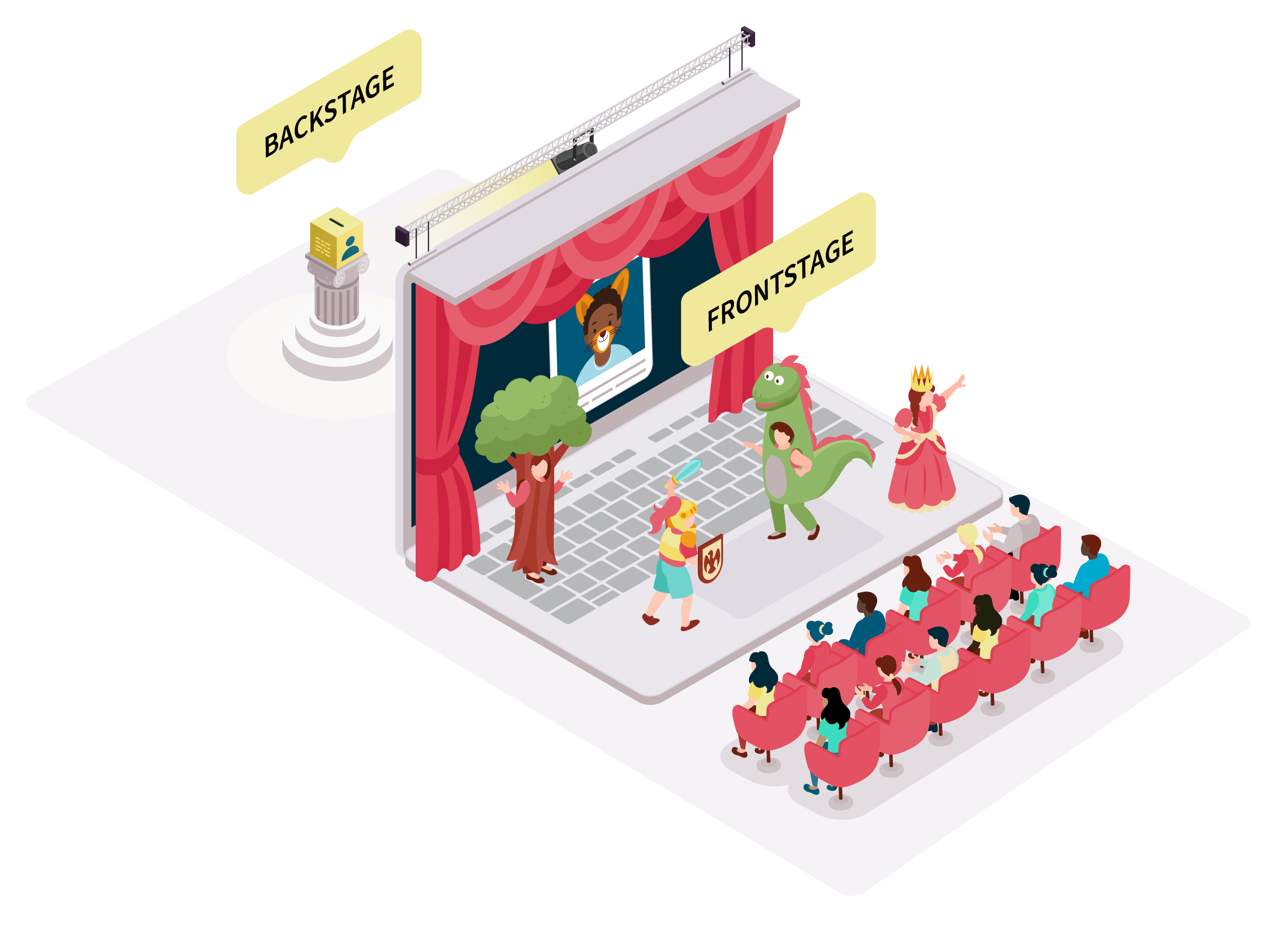 Think about online privacy like a stage where you watch school assembly or a music concert, where the frontstage and backstage are separated by a curtain.